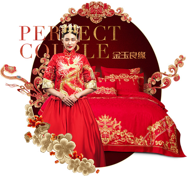 維科家紡以植物花卉為靈感,創(chuàng)造出一種更為接近大自然的設(shè)計,讓忙碌于都市生活的心靈獲得些許安寧?;閼c系列產(chǎn)品運用純正的中國紅搭配刺繡工藝,滿載喜慶的同時呈現(xiàn)出美好的祝福,營造出專屬于新人的浪漫天地。