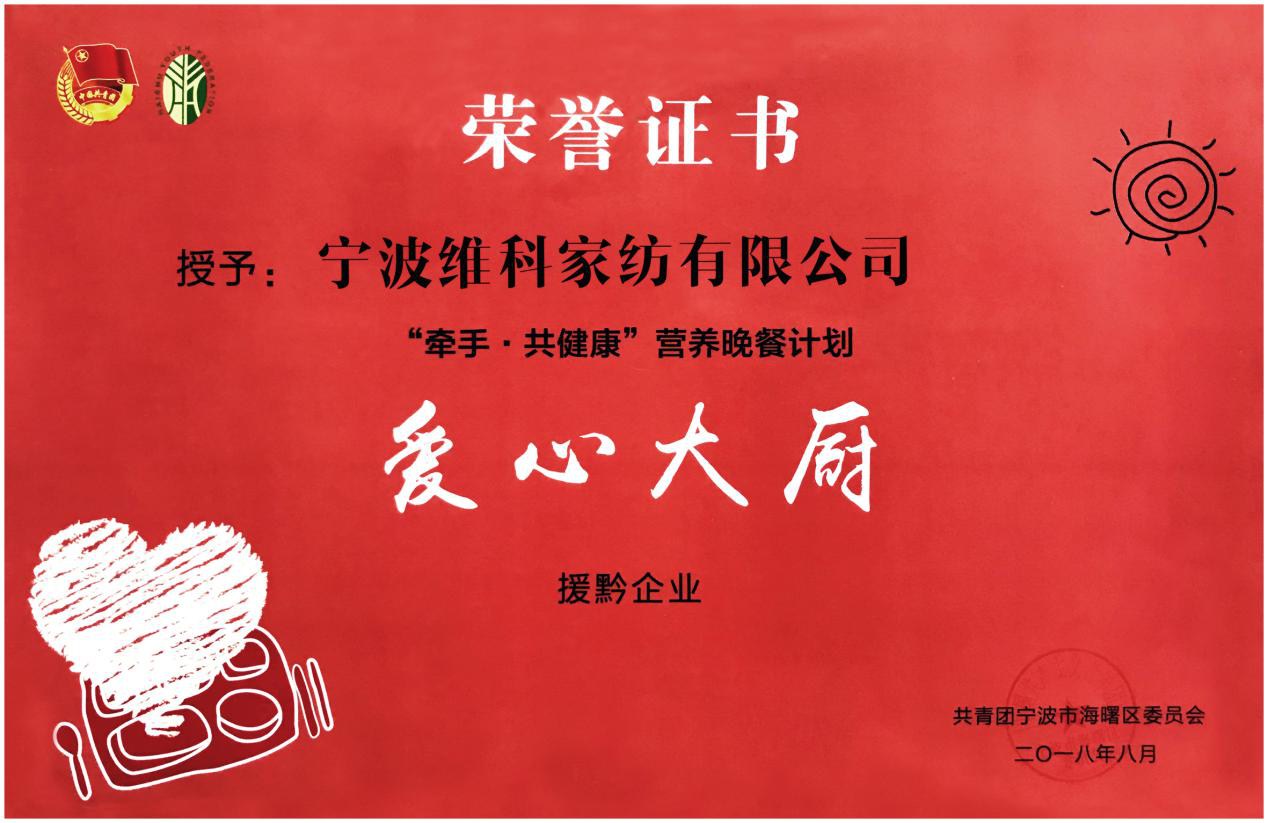 海曙區(qū)委副書(shū)記、政法委書(shū)記張啟表在蒞臨維科家紡攤位詢(xún)問(wèn)義賣(mài)情況時(shí),對(duì)于維科家紡的企業(yè)責(zé)任感、愛(ài)心奉獻(xiàn)精神,表示了高度贊揚(yáng)。海曙區(qū)團(tuán)委更是授予維科家紡“愛(ài)心大廚援黔企業(yè)”榮譽(yù)稱(chēng)號(hào)。