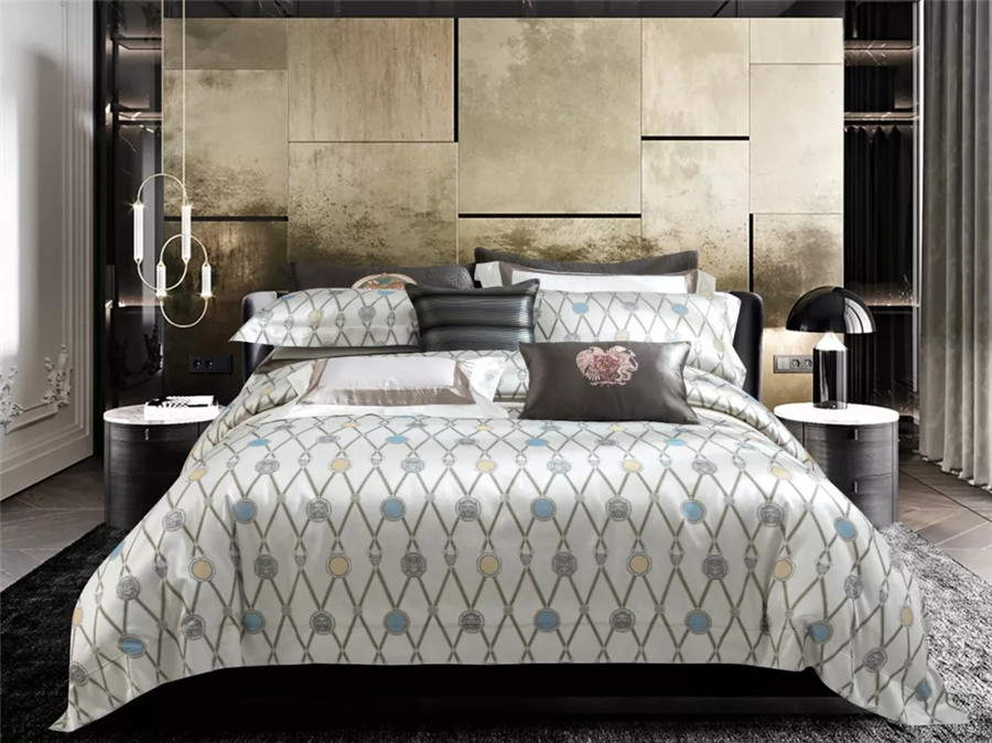 高支高密的全棉提花面料,質(zhì)地柔軟、細膩、爽滑,光澤度好,懸垂性及透氣性好,吸水性強,觸感也極為柔軟。