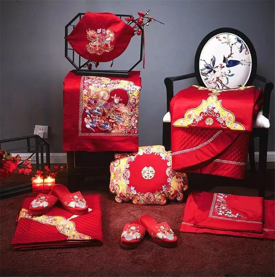 嫁妝是女方身份、財勢的象征,在傳統(tǒng)的婚嫁習俗,婚慶床品是女方必備的嫁妝之一,因此很多地區(qū)在選購婚慶床品時會選擇數(shù)量在六至十套,甚至更多。
