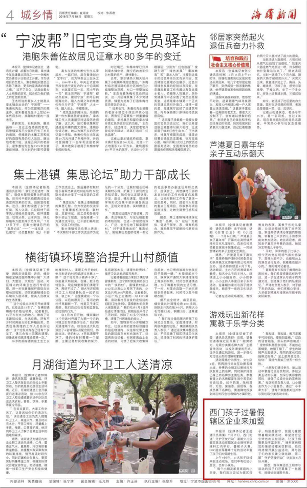 本次活動(dòng)受到了海曙區(qū)西門街道及媒體的大力支持與關(guān)注。海曙區(qū)電視臺(tái)對活動(dòng)現(xiàn)場進(jìn)行全程拍攝,來自山西大同的小候鳥韓斌在采訪中表示“這是我來寧波第一次有小朋友跟我一起過暑假,今天我不僅學(xué)會(huì)了疊被子,還拿了小達(dá)人的獎(jiǎng)狀,我很開心!”