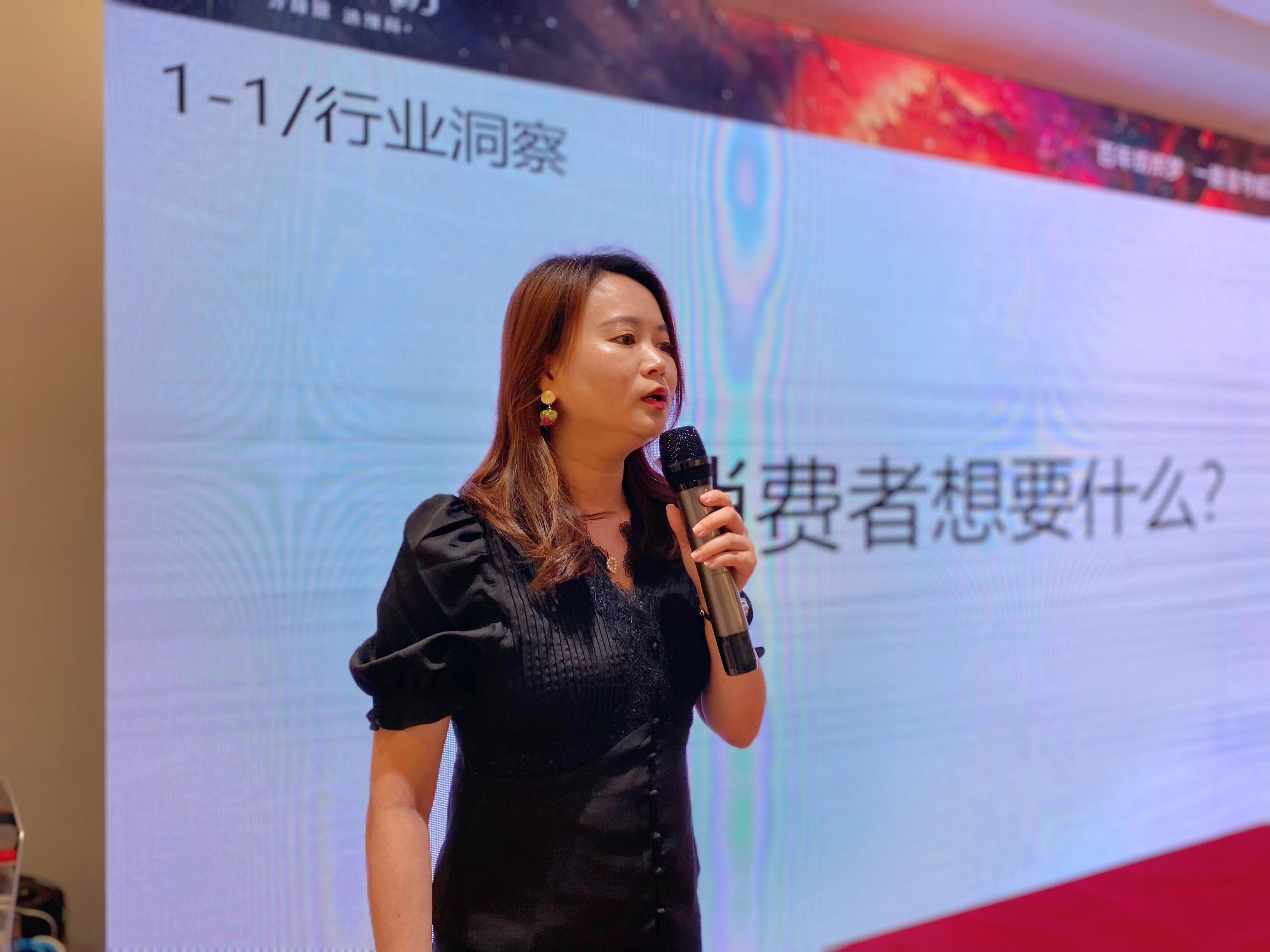 品牌推廣部經(jīng)理畢優(yōu)曉女士從品牌背景、主題發(fā)布、產(chǎn)品發(fā)布和品牌營銷四個(gè)方面闡述了秋冬擴(kuò)大聲量的動(dòng)作,帶來新品上市方案。