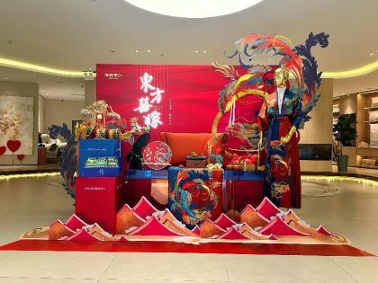 進門處DP點通過龍生九子的盲盒、龍頭鳳尾、團扇等元素營造出浪漫而喜慶的龍年氛圍,創(chuàng)造了一個令人陶醉的夢境。
