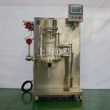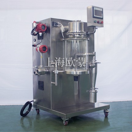 小型噴霧干燥機主要在科研階段對溶液或流體樣品進行噴霧干燥成粉或微小顆粒。其原理是通過霧化器將樣品霧化成微細霧滴,進入干燥室內(nèi)進行熱交換,水份瞬間蒸發(fā),固體經(jīng)過旋風分離器進行回收,飽和氣體經(jīng)過除塵器過濾后排空,本設備可應用于從試驗室到一般研究室的噴霧干燥作業(yè),在食品醫(yī)藥化工行業(yè)均可良好的應用。